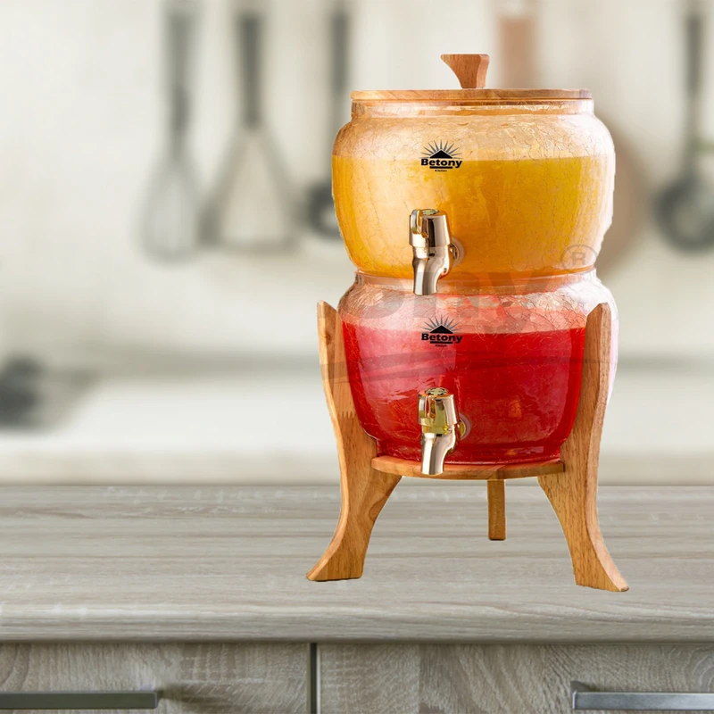 کلمن شیشه ای بتونی Betony مدل مارشال دوطبقه طرح الماس با طراحی مدرن و جذاب در طرح شیشه الماس (ترک دار) در دو رنگ سفید و نباتی (شامپاینی) عرضه شده است . این محصول با زیبایی و کیفیت بالای متریال ، درخور آشپزخانه و فضای سرو و پذیرایی خانه های ایرانی طراحی شده است و مناسب برای انواع نوشیدنی ها و شربت ها بخصوص ویژه مهمانی ها می باشد. امکان شست و شو در ماشین ظرفشویی فراهم است . لازم به ذکر است علی رغم اینکه چوب پایه و درب آن آب گریز شده است ، از تماس طولانی مدت با رطوبت دور نگهداشته شود . این کلمن 8 لیتر گنجایش دارد و دارای شیر خارجی پلاستیکی است .