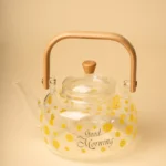 این قوری جذاب با طراحی گلدار و جنس شفاف پیرکس، هم برای دم کردن چای و دمنوشهات عالیه و هم برای پذیرایی خیلی شیکه 😍 علاوه بر اون، دسته و درب چوبیش هم ظاهرش رو خاصتر کرده.