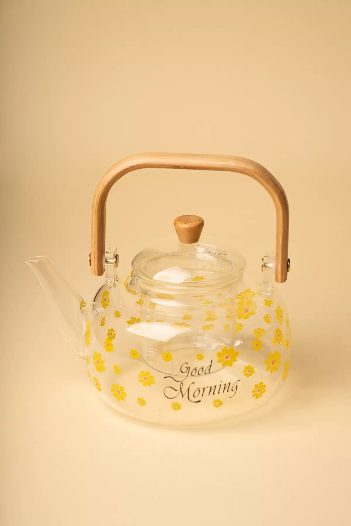 این قوری جذاب با طراحی گلدار و جنس شفاف پیرکس، هم برای دم کردن چای و دمنوشهات عالیه و هم برای پذیرایی خیلی شیکه 😍 علاوه بر اون، دسته و درب چوبیش هم ظاهرش رو خاصتر کرده.